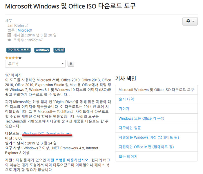 ☞Microsoft Windows 및 Office ISO 다운로드 도구